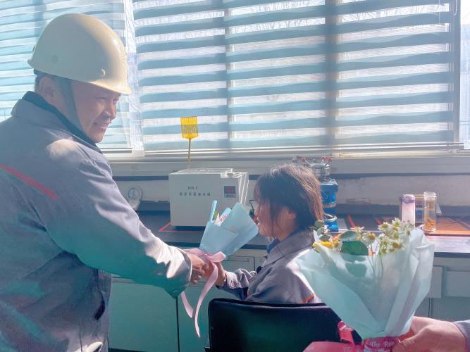 為了體現(xiàn)公司領(lǐng)導(dǎo)對全體女員工的關(guān)愛,為每位女員工準(zhǔn)備了精美的禮物一份,公司領(lǐng)導(dǎo)李總為全體女員工發(fā)放鮮花一束。